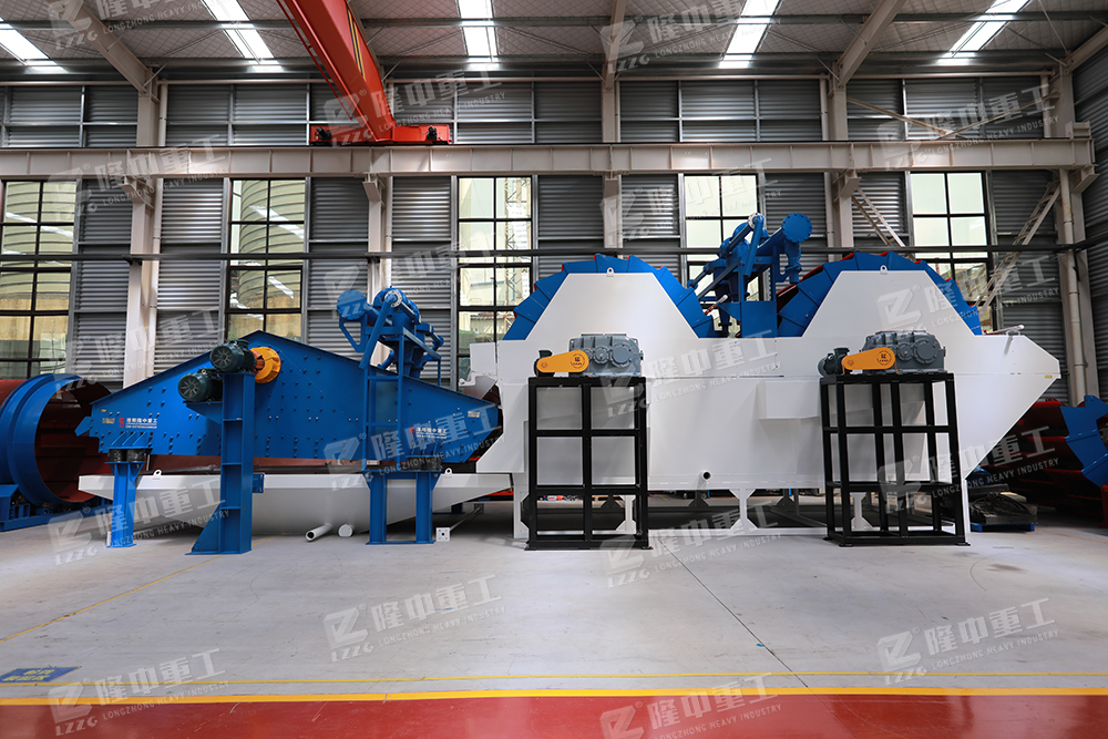 雙輪洗砂回收一體機由洛陽隆中重工針對砂石洗選行業中含泥含粉量較高的物料研發設計,旨在解決傳統洗砂設備中細沙流失量大、耗水量高、洗選不干凈等問題。該設備將兩臺輪斗洗砂機與細沙回收機巧妙對接,實現了物料的多重清洗和細沙回收,提高了成品砂的品質和經濟效益。